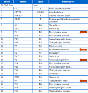 - Stress must be output in op2 file (PARAM,POST,-1) with a command STRESS(PLOT)=…